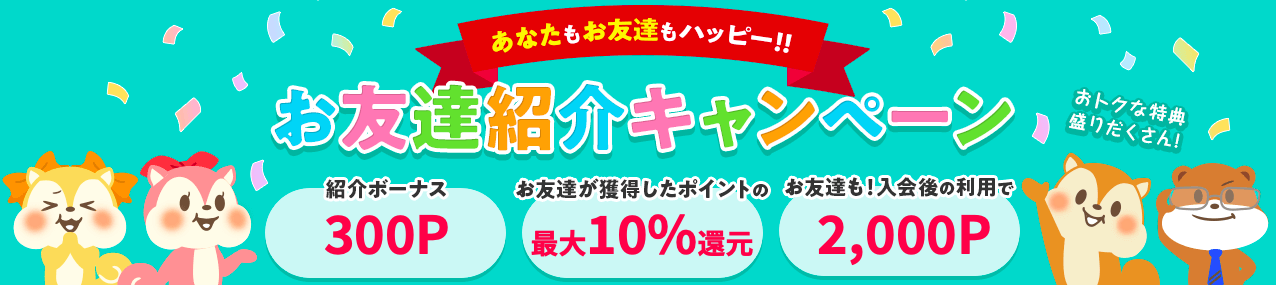 | 友達紹介制度 | 1件1500+2ティアで10~100% |