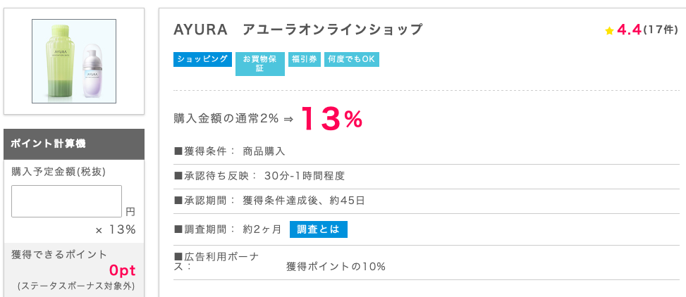 AYURA アユーラオンラインショップ:13%還元