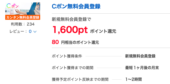 Cポン無料会員登録:80円