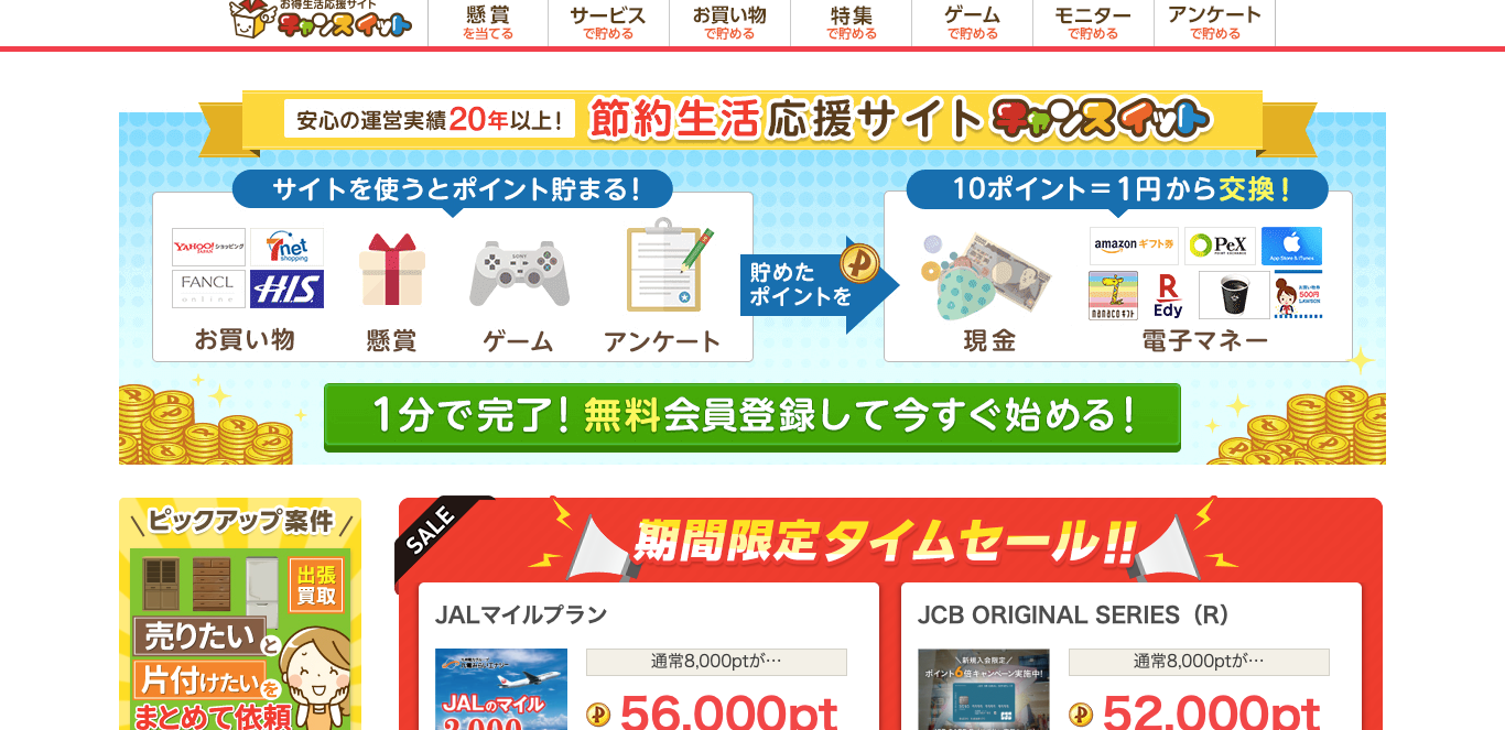 ECナビは、モニター/アンケート/懸賞と幅広いのが特徴です。